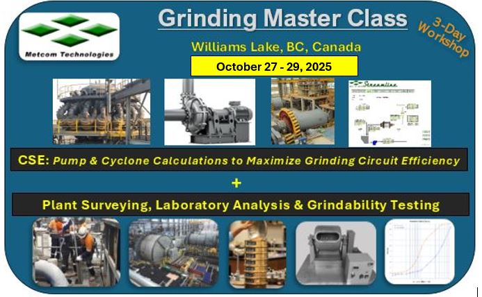 Metcom Technologies se complace en anunciar una serie integral de clases magistrales de dos partes, que se llevarán a cabo durante tres días del 27 de octubre al 31 de octubre.El aunque 29El 2025 en Lago Williams, Columbia BritánicaEste taller interactivo está diseñado para metalúrgicos de planta, técnicos de laboratorio y otros profesionales de la industria que desean adquirir herramientas prácticas para optimizar los circuitos de molienda.